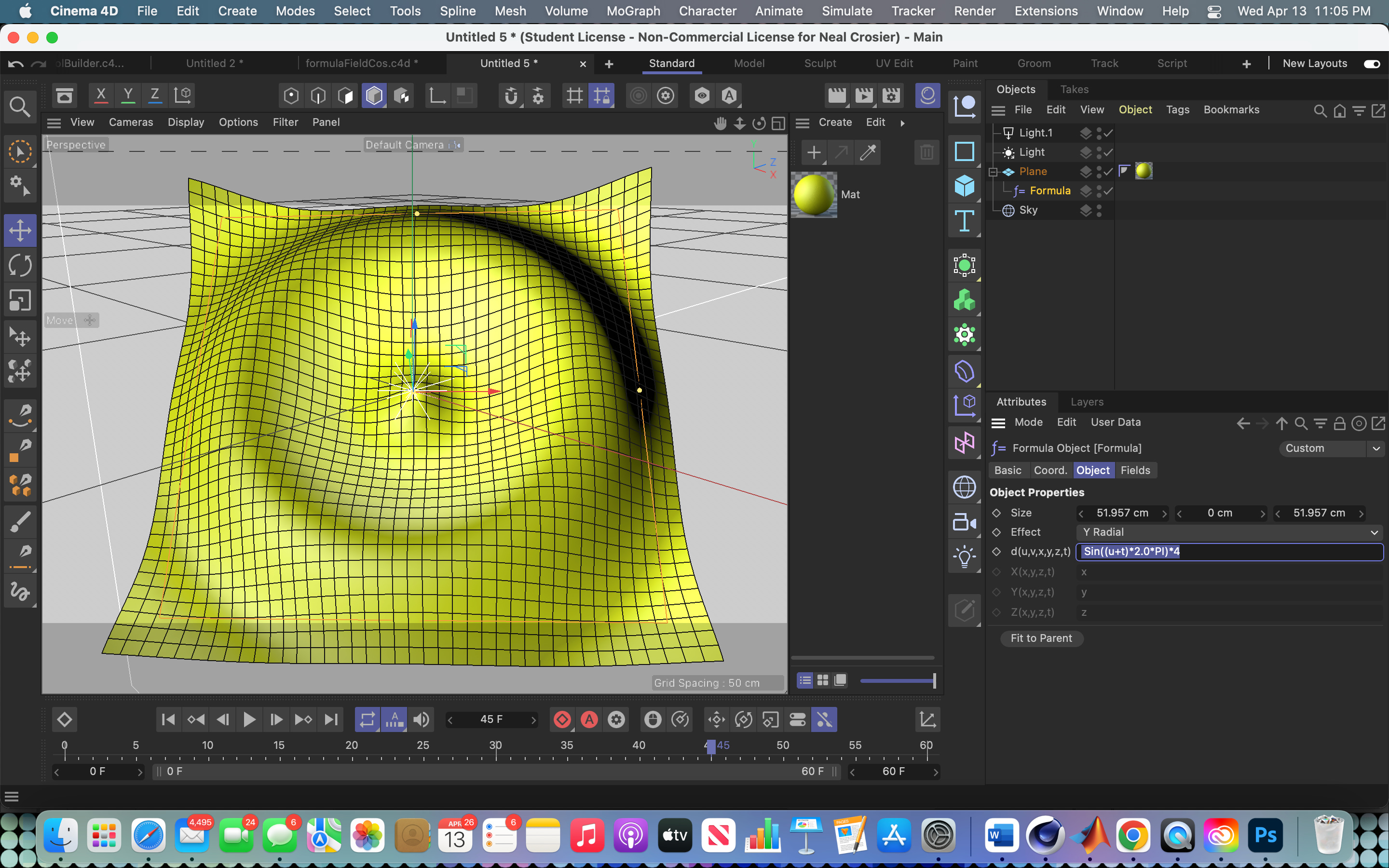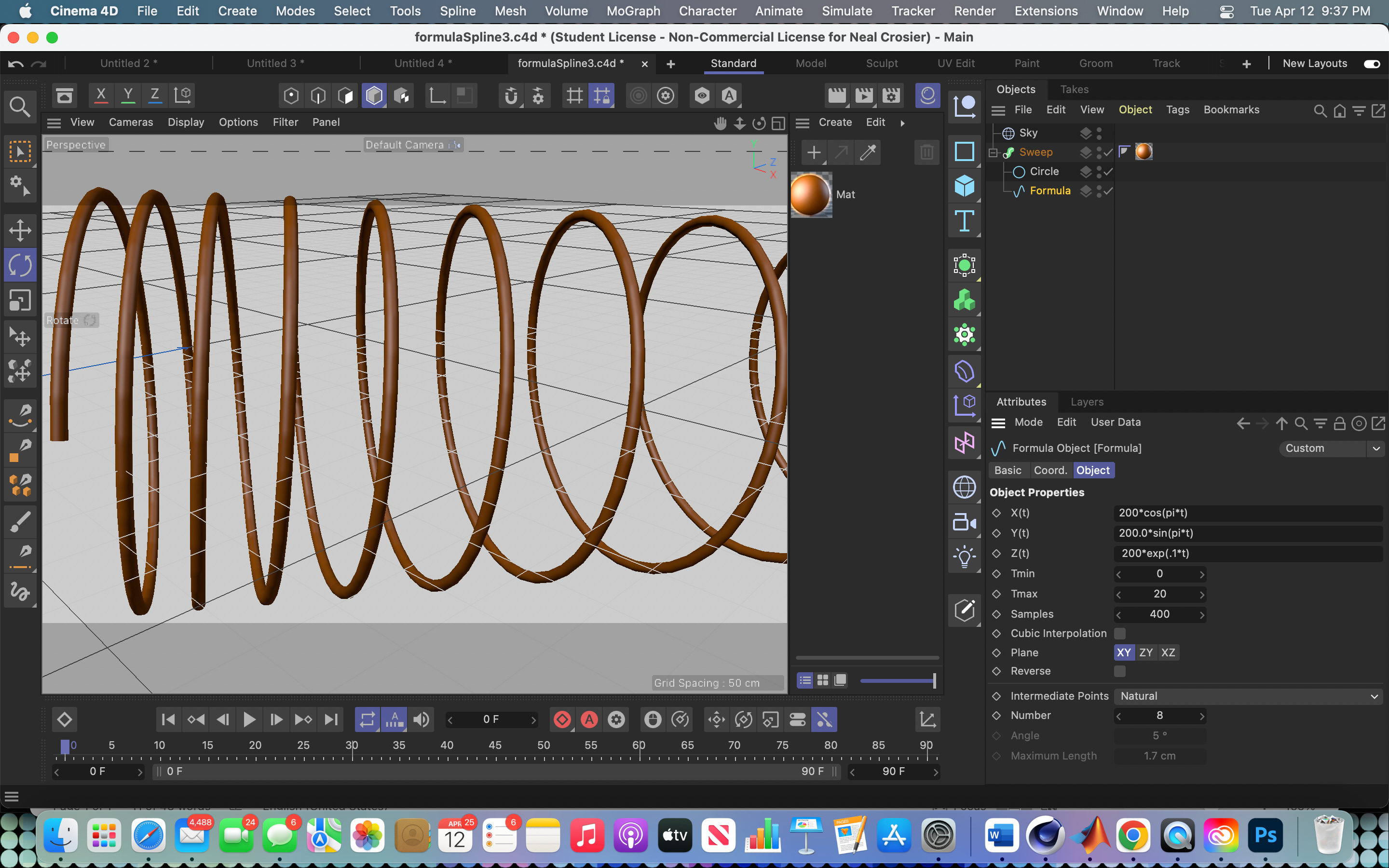 I hope that this short study of the various formula functions in Cinema 4d was interesting. If you are presently taking a math class, you certainly will impress your professor with your illustrations of math concepts. By the way, if you are a student there is a very reasonably priced option for student use of the software. Cinema 4d is used by some of the most renowned digital artists. Maybe you will have a chance to work with it yourself.