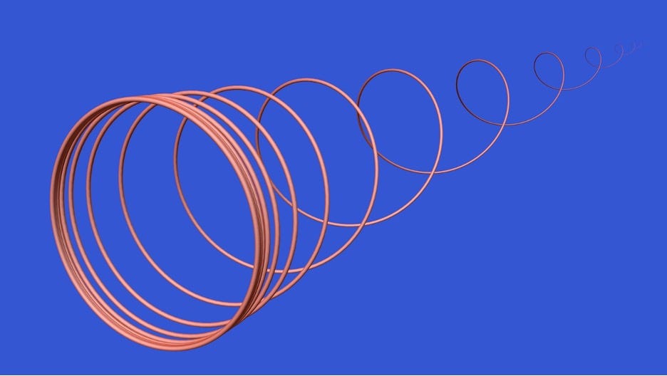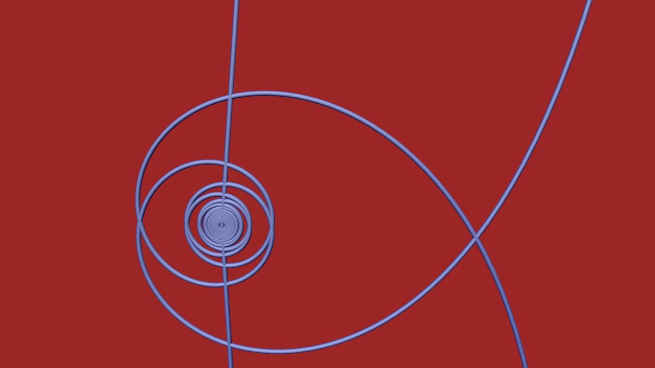 In this example the parametric equations are x(t) = 200*cos(pi*t), y(t) = 200*sin(pi*t), and z(t) = 200*exp(0.1*t). The result of the equations is a curve, or spline, with no width so it is necessary to sweep a vary small circle along the curve to view it in the renderer.